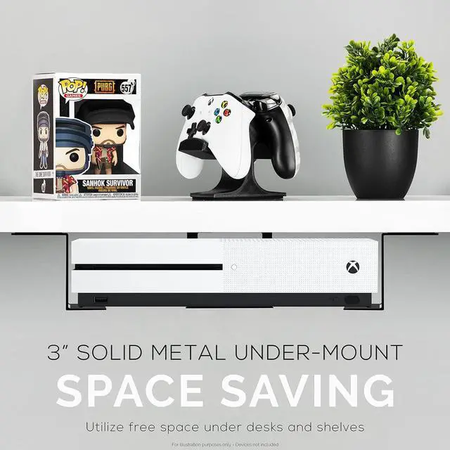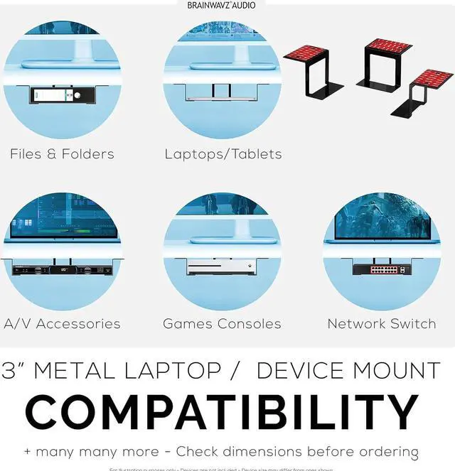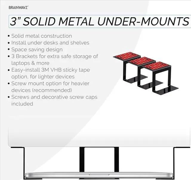 LARGE UNDER DESK HOLDER: Solid metal construction and suitable for small computers, laptops and almost any device that is less than 3" thick, this includes Cable box, Modems, Wi-Fi Routers, Nintendo Switch, Slimline Games Consoles, Smart TV Boxes, Streaming Devices, Files, Folders & MORE!