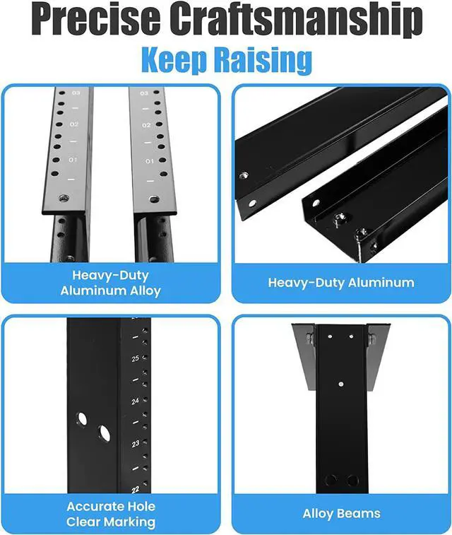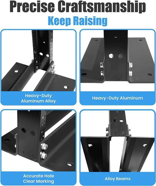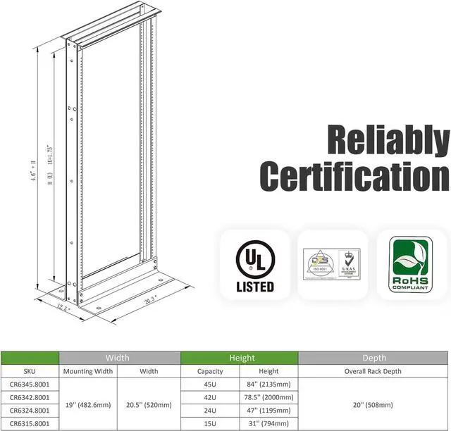1. Fit 19" Wide Standard Equipment. 2. Light Weight and durable, premium quality craftsmanship, yet heave duty *900LB Capacity. * 3. Assembled Size: 79" H x 21" W 4. Serve with numbered round screw holes (M6 Threaded), also M6 screws are included.
