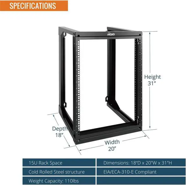 Widely applicable: Open frame server rack fits for 19inch equipment; Suitable choice of data rack and audio rack; Various specifications including height of 6U, 9U, 12U, 15U, 18U, depth of 18inch and 24inch; Compliant EIA/ECA-310-E