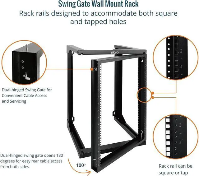 Design Features: Open Frame structure of wall mount server rack, easy to move and heat dissipation; 180 degrees swing gate for rear cable access from both sides