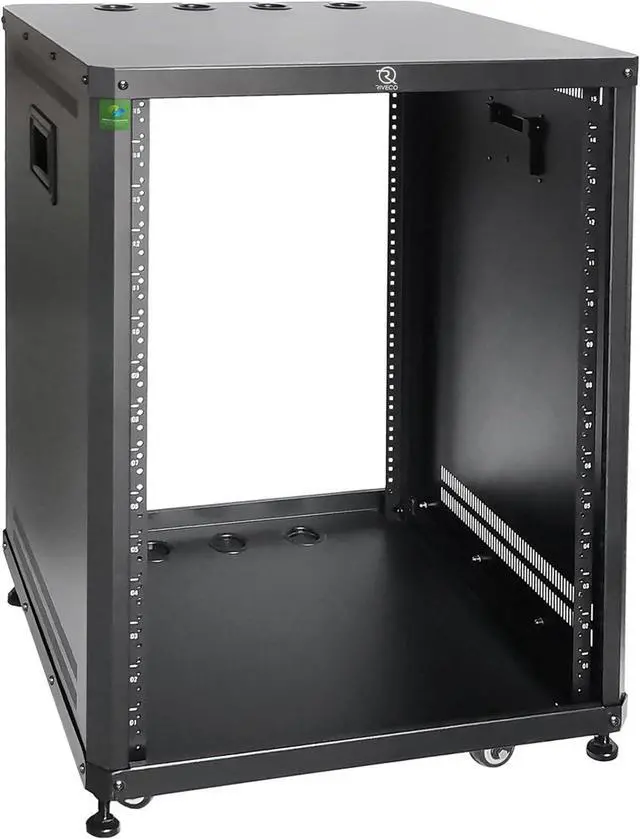 are 4 gaskets (diameter: 50 mm) on the top panel & 3 in the bottom of the studio rack, to organize the cable in and out. Reveal them when needed. This open front and rear cabinets with casters are widely used in studio, home theater, office, for mounting electronics & equipment like AMP, AV, HIFI, NAS, Server, DATA, internet router, amplifier, hard recorder, computer, X-box. Telecom & musical instrument