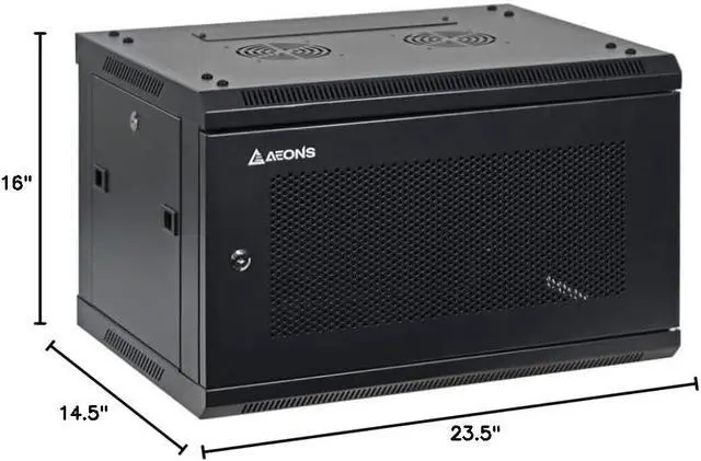 Includes: 1 x Wall mount network server cabinet with cooling fans (easy assembly required) / 1 x Screw package / 2 x Keys