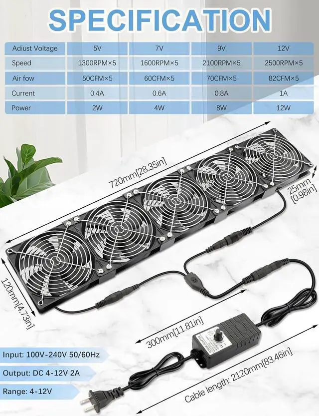 : Size 23.6 for 2U 3U 4U Rack Space, Design - Exhaust, Airflow: 5x 85 CFM;