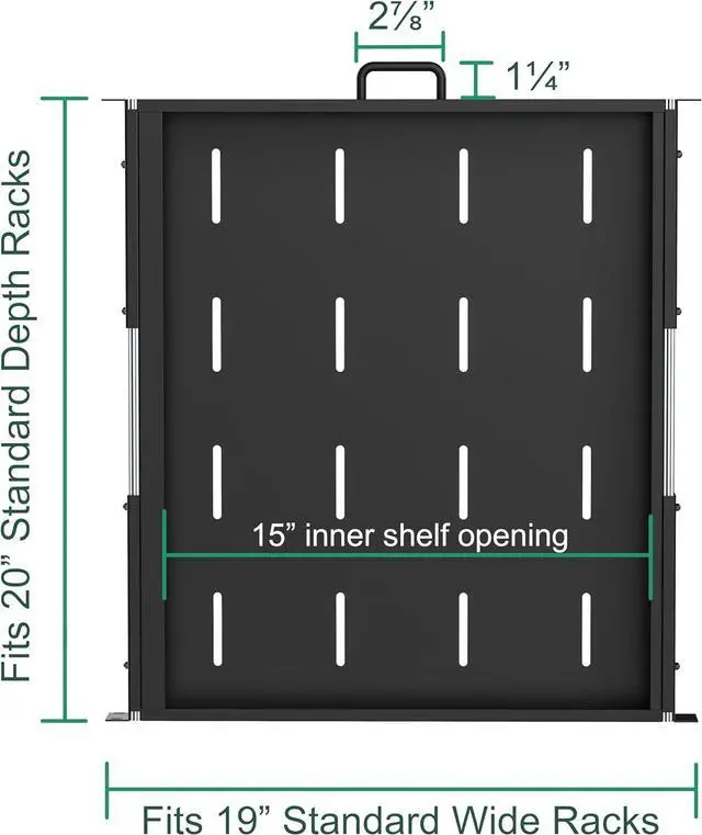 Total Depth: The fixed 20-inch steel platform smoothly slides out to a full 35 inches, delivering 15 inches of extension travel for deep rack accessibility.