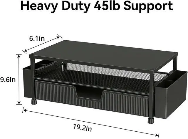 45lb Heavy Duty SupportEngineered with a thickened solid metal panel that supports up to 45 lbs. without wobbling. Safely holds your heaviest monitors, printers, laptop or even a stack of books with unwavering stability. Built to last for years of daily use