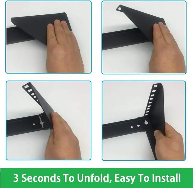 PRODUCT SIZE: W 19.29 " x D 7.56 " x H 5.9 ", 4U Spaces; The mounting holes on the wall rack mount are 18.11 inches (46 cm) center to center for greater stability, and mounting to standard wall studs.