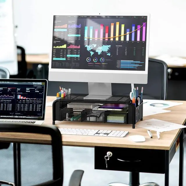 Space-Saving Design Keeps your workspace tidy and clutter-free while elevating your monitor to a comfortable viewing height.