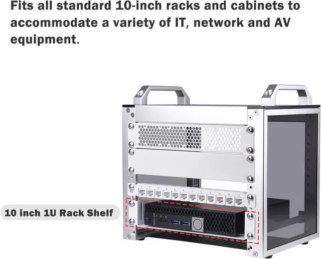 Compatible with Standard 10 inch Server Racks or Cabinets and DeskPi Rackmate T1/T0 Server Cabinet. Multihole design maximizes air circulation and keep Servers, Audio, Video Equipment, and other equipment cool. Color: White