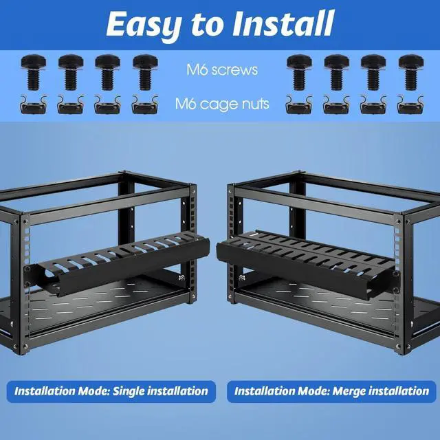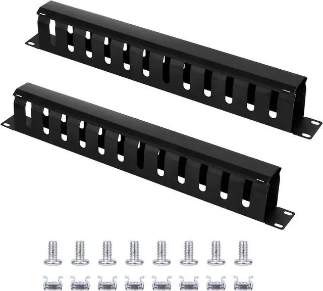 1U Cable Management RackThis cable raceway kit includes 2 pcs 19" (W) X 2.72 " (D) X 1.75 " (H) cable raceways, 8 pcs M6 screws and cage nuts. The cable raceway black has 12 slots, each slot is 0.39 " wide. This wire raceway is easy to install and suitable for standard 19" server racks and network cabinets.