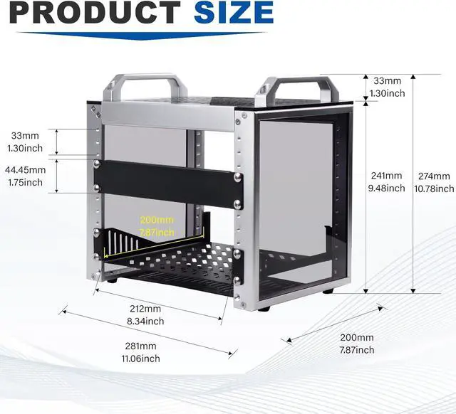 4U StandardThe cabinet has a height of 4U, which is a standard unit size. With 1U equaling 1.75 inches, 4U implies a height of 7 inches.