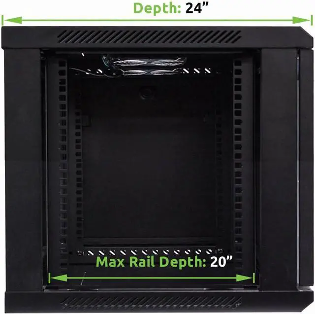 Dimensions: 19.5 " H x 24" W x 24" D 132 pound weight capacity Sturdy welded frame structure Rails with cage nut style bolting Fits Standard 19" rack-mount equipment