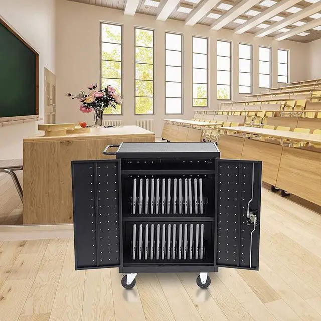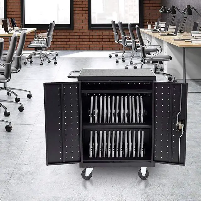 SAFE and SECURE STORAGE: Protect your devices with padded bays to deter damage, ventilated panels to prevent overheating, surge protectors to protect from power fluctuations and a key locking system for the front & back doors, in addition to 2 locking caster wheels to keep cart in place
