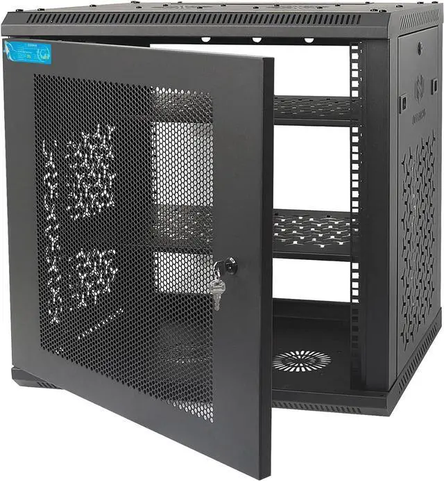 All-IN-ONE EASY ASSEMBLY: This 12u wall mount cabinet comes with 2 full-size rack shelves, 2 cooling fans, removable vented side panels, a lockable mesh front door that can be installed with the left and right sides interchanged, and relevant mounting hardware, which makes it easy to assemble