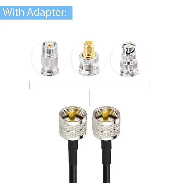 Adapter - Include: 1pcs -UHF Female(SO239) to UHF Female(SO239) Adapter, 1pcs - SMA Male(PL259) to UHF Female(SO239) Adapter, 1pcs - BNC Male to UHF Female(SO239) Adapter.
