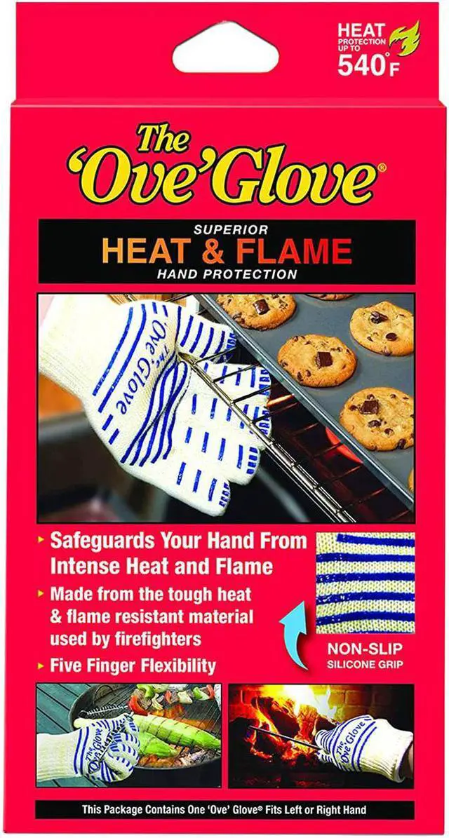 Handy Man's - The Ove Glove Hot Surface Handler crafted from Kevlar & Nomex by DuPont offers firefighter-grade protection withstanding temperatures up to 540 degrees. Ideal for barbecues kitchens fireplace log rearranging car repairs welding and lightbulb changes it's a versatile tool for unisex adults. The exterior layer is firefighter-grade heat and flame-resistant material while the interior features soft double-knit cotton for comfort. Machine washable for easy maintenance its tough exterior forms a thermal isolation barrier ensuring safety when handling hot objects. The Ove Glove is perfect for the kitchen barbeque and handling hot surfaces around the house.