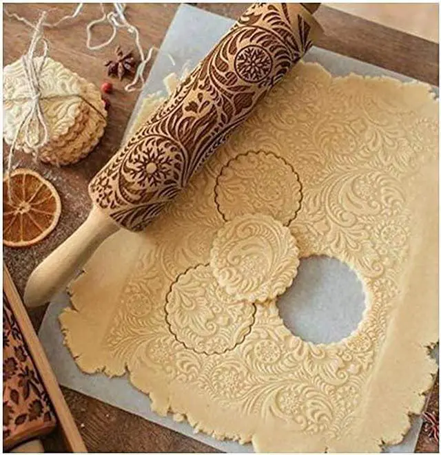• Christmas Symbol Pattern: Made from durable, moisture-resistant beech hardwood with engraved Christmas flowers pattern. Smooth and flat silicone surface, stain and odor resistant, dough does not stick like plastic or wooden rolling pins.