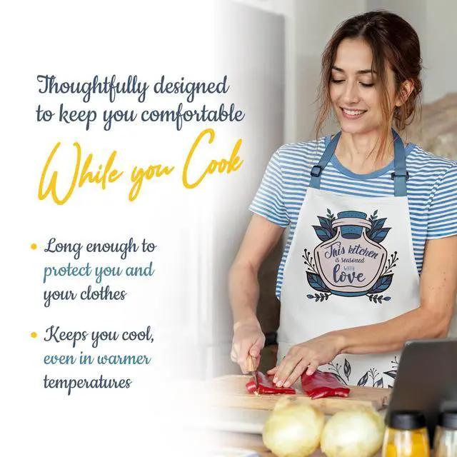 Our apron is designed to cover from chest to knee with adjustable neck and waist ties, ensuring a comfortable, secure fit for every body type while keeping clothes protected from spills and splatters.