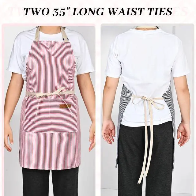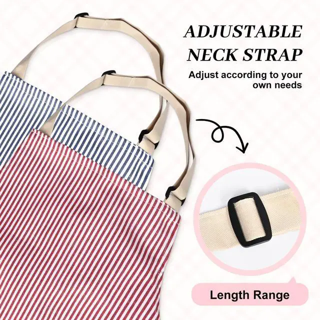 All-Size Adjustable Comfort | Adjustable Apron Engineered with aslide-buckle adjustable neck strap and 55-inch extra-long waist ties,these unisex aprons adapt effortlessly to heights from 4'11" to 6'5".Unlike stiff aprons that dig into shoulders,the ergonomic design redistributes weight to prevent fatigue during long cooking sessions.Perfect forpetite chefs needing full torso coverage orplus-size users seeking breathable mobility.