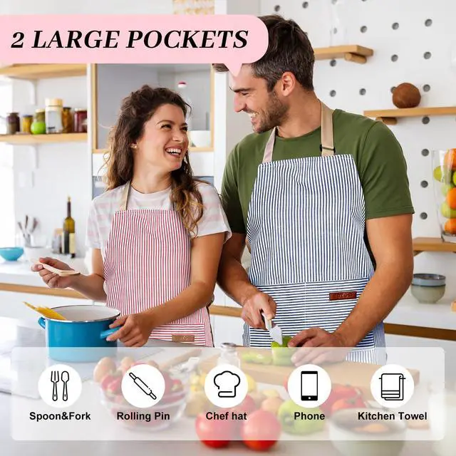 Aprons For Women With Pockets| Mess-Free Cooking Twodeep divided pockets (6.5"x5.5" each) securely holdmeat thermometers,smartphones,spice packets,and grilling tools-eliminating frantic searches mid-recipe. Reinforced stitching prevents sagging even with heavy utensils.Ideal for bakers referencing recipe cards orBBQ masters managing grill accessories.