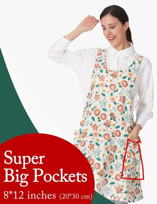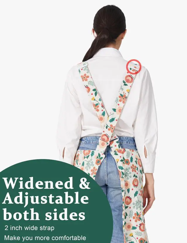 Adjustable Cross Back Aprons for Women with Pockets Cotton Linen Cooking