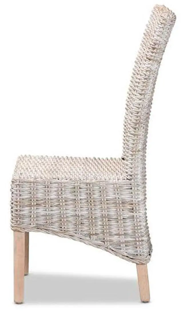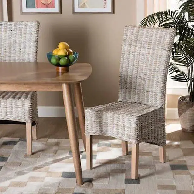 Indulge in a cozy, warm atmosphere for every meal with the charming design of the Trianna dining chair. This chair is comprised of a sturdy wood frame wrapped in natural rattan. Its elongated backrest curves slightly to ensure a comfortable dining experience while lending a refined silhouette. The Trianna will arrive fully assembled and utilizes straight legs for excellent stability and support that complements the streamlined design of the chair. Perfect for producing a casual ambiance in your dining space, the Trianna dining chair is sure to enhance the feel of any occasion.