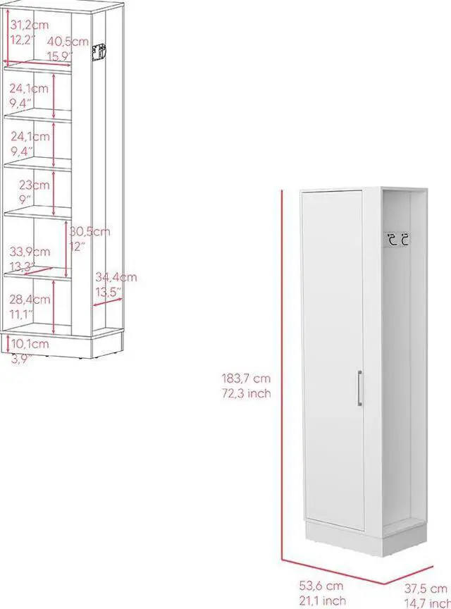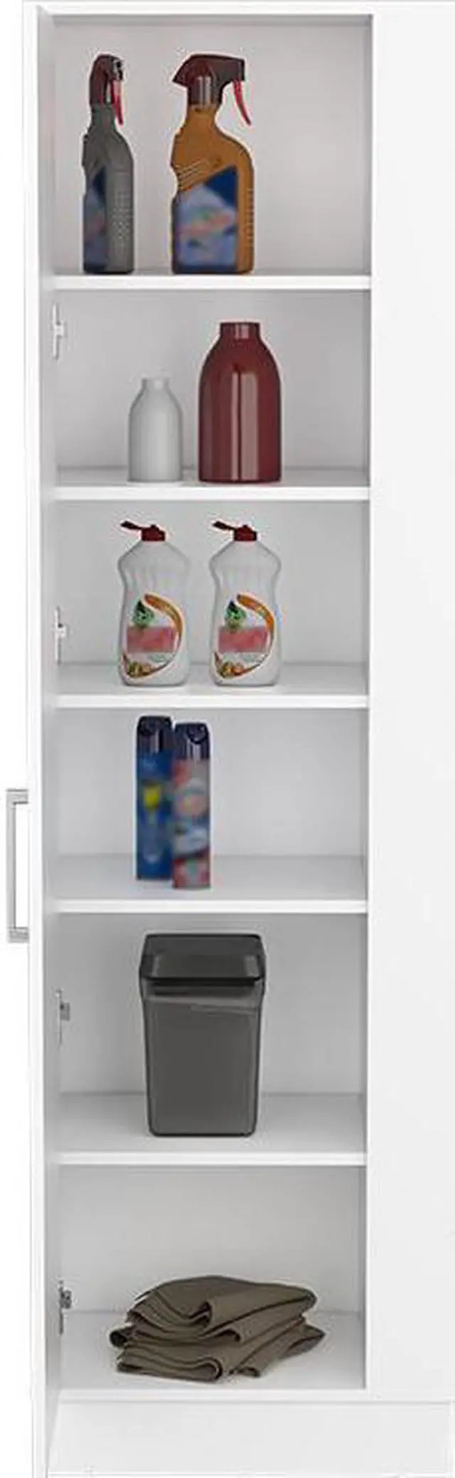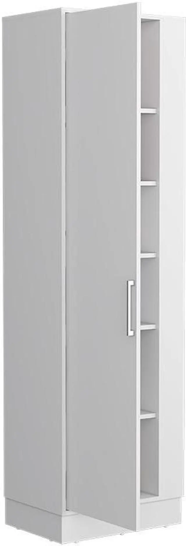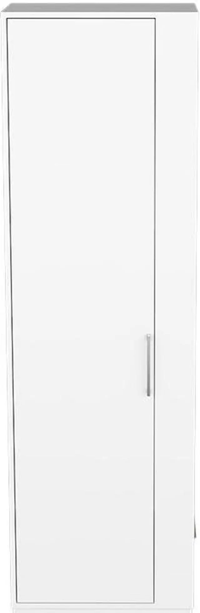 "Manika is a storage cabinet with Single Door and shelves ( 9.4"" H x 15.9"" W), which is what you are looking for. This modern and durable storage cabinet can be a piece of furniture for your kitchen, bathroom, or bedroom, and is perfect to sort jars, cleaning products, or your essentials accessories. Designed with an elegant white manufactured wood finish.
