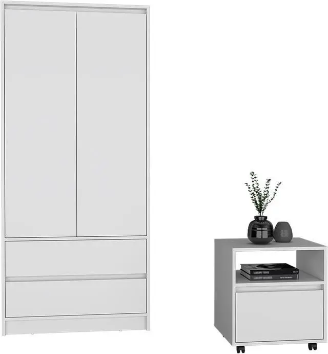 "This Laurel 2 Piece Bedroom Set is perfect for anyone who wants a stylish, functional set that will match any bedroom. The beautiful white manufactured wood finish and sleek design make it an excellent choice for anyone wanting a modern bedroom look. The set comes with a nightstand and a spacious closet, giving you plenty of extra storage capacity.