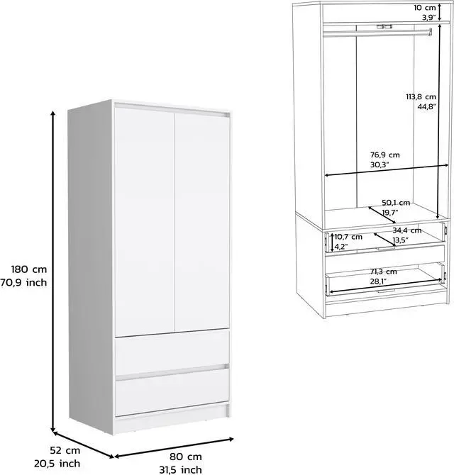 Looking for an attractive and functional closet to store your clothes? Look no further than the Closher Armoire! This stylish closet has two double drawers (28, 1""W X 13, 5""D), a double-door cabinet, and a metal rod inside - perfect for keeping your clothes tidy. Considering your comfort, we have created this closet with an ergonomic size and excellent storage capacity.