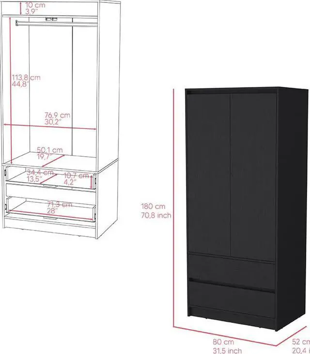 Looking for an attractive and functional closet to store your clothes? Look no further than the Closher Armoire! This stylish closet has two double drawers (28, 1""W X 13, 5""D), a double-door cabinet, and a metal rod inside - perfect for keeping your clothes tidy. Considering your comfort, we have created this closet with an ergonomic size and excellent storage capacity.