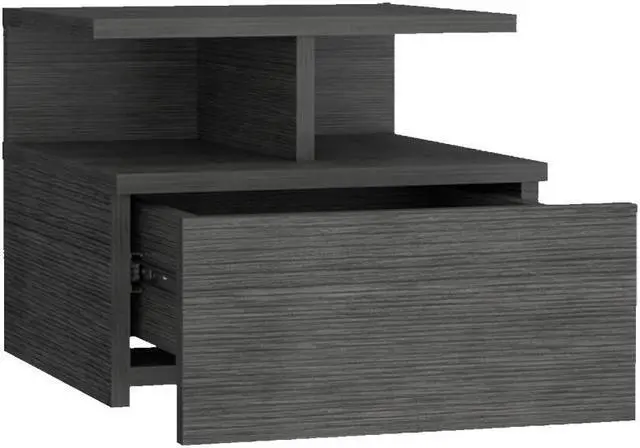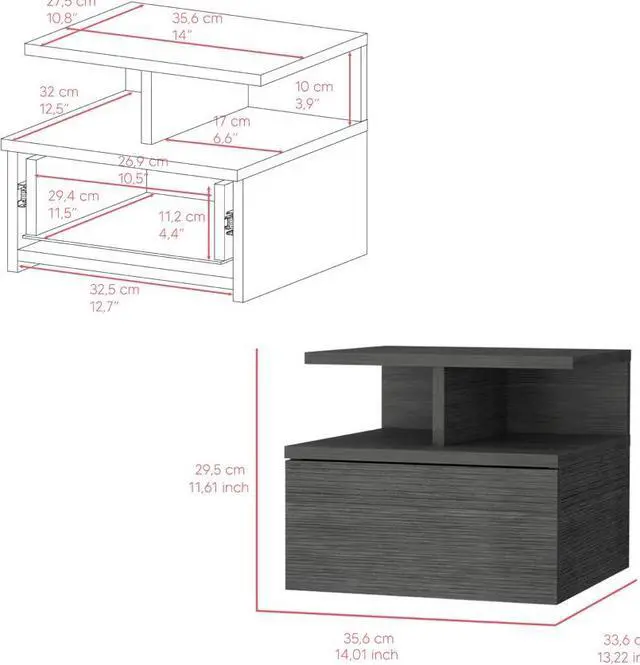 "The Flopini floating nightstand was designed in a modern way, designed to give style to your bedroom. With one drawer, size ( 4.4"" H x 10.5"" W x 11.5"" D), and one shelf (14"" W x 10.8"" D), you can organize your books favs and accessories. Designed with an elegant white manufactured wood finish.