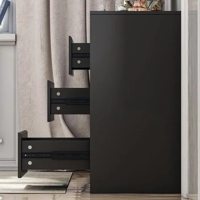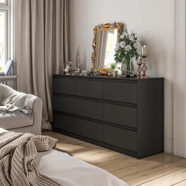 This black dresser chest with 9 drawers provides sufficient storage space, it comes with 9 drawers, its ideal for store clothes, toys, books and so on. Also, you can make a full use of the spacious dresser top to store daily-used stuffs or decorative crafts.