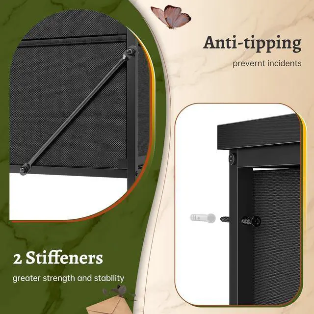 Durable ConstructionThe sturdy steel frame provides stable support and ensures years of use; The anti-tipping accessories prevent the wardrobe from tipping over. The 4 adjustable feet can protect your floor from scratches. The quality fabric drawers are breathable and applied