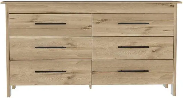 This clean-lined double dresser brings your bedroom or guest room into the 21st century by offering virtual storage space. Made in Colombia, this economic piece features six very spacious drawers ( 7.5" high x 26.8" wide) that will provide you with plenty of hidden space; each drawer comes with black metal pulls for a modern touch, roller glides, and all-metal hardware for smoother, longer-lasting drawer operation. A neutral finish gives this design the versatility to blend with any color palette you dream up.