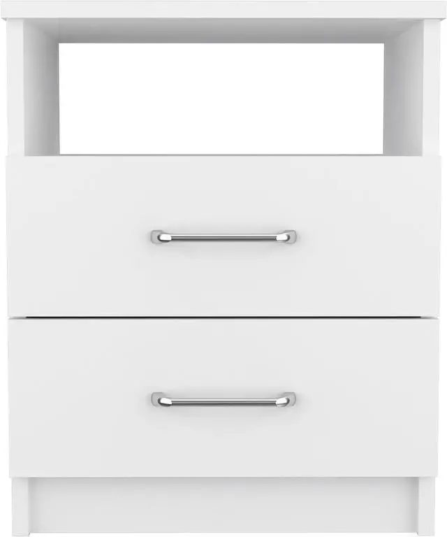 The spacious top is great for placing your books, phone, or decorative items. A shelf below and two drawers are great options for that extra storage space you want next to your bed. All-metal railings and pulls are the perfect complements to make it a lasting product for you.