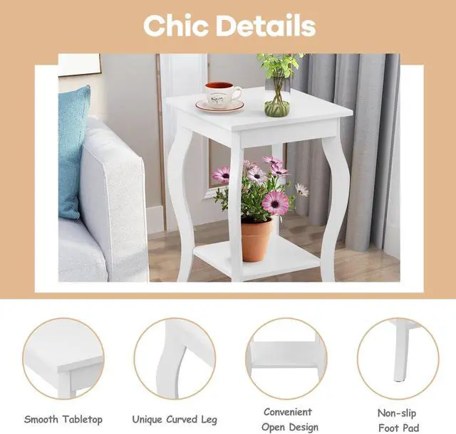 Durable and Sturdy Construction: Constructed from premium engineered wood, our side table enjoys great stability and durability. More, its four curved legs add a nice theme to your room and offer solid support at the same time. The overall stability is also enhanced via these legs.