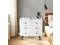 Sturdy Construction and Premium Material: The chest of drawers is made of premium engineered boards that are durable and anti-scratch, aiming to serve for a long time. The drawers are integrated with metal knobs and glides that ensure smooth pulling. And the tapered plastic legs can keep the chest standing stably on the floor.