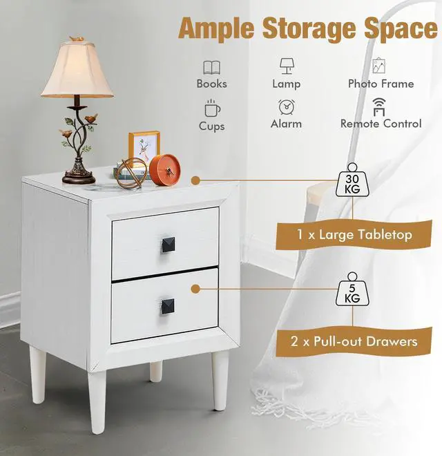 More Space for Storage: It is designed with two drawers to provide you with extra storage space for small things to store. And you can easily find items when you need them. You may also place any little decorations like a lamp, a vase, or a clock on the tabletop.