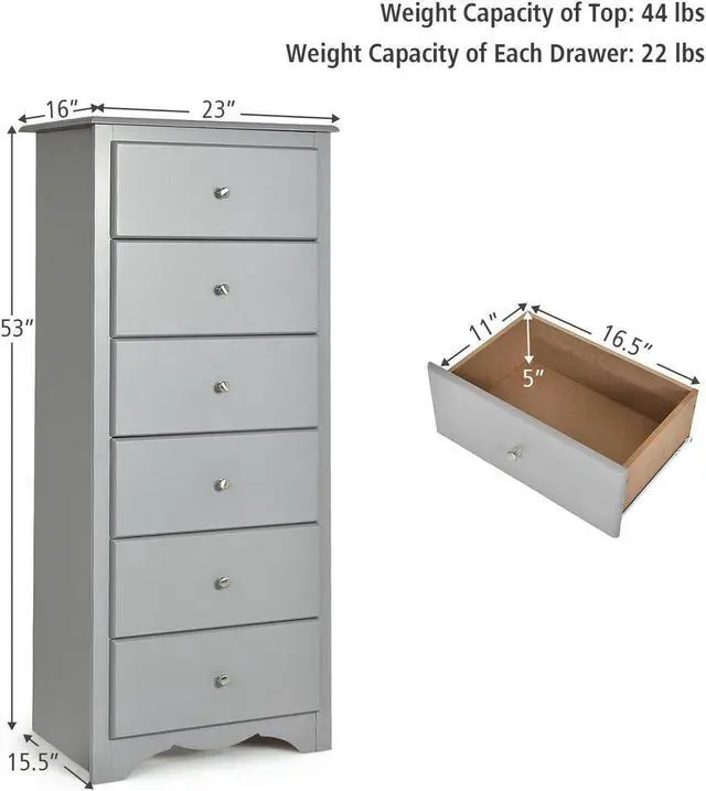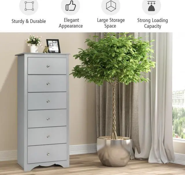 6 Drawers and Spacious Top for Storage: This cabinet comes with 6 drawers and spacious top that provide enough storage space for clothes. Each drawer installed with metal knobs and drawer slides for easy pulling and pushing of the drawers.