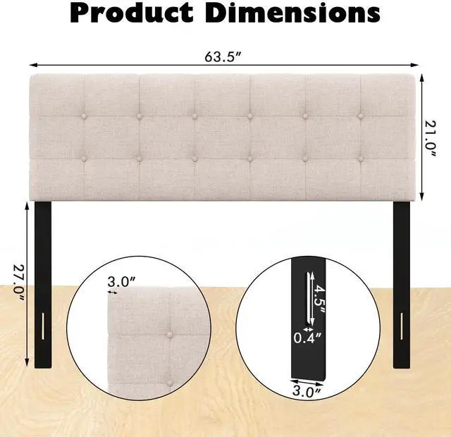 Comfortable Upholstered Headboard: Covered by premium linen fabric, the bed backboard is skin-friendly, breathable, and wear-resistant. Meanwhile, padded with a high-density sponge, the upholstered headboard can give you a soft and comfortable touch and prevent bumping accidents.
