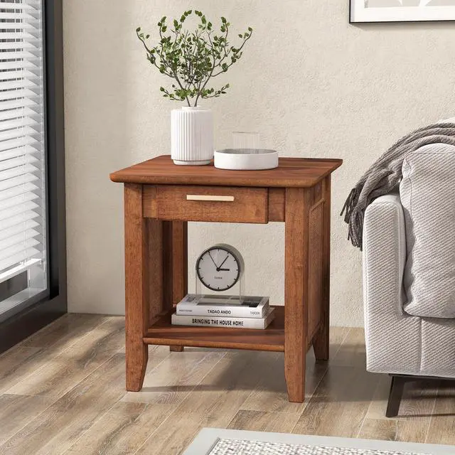 Timeless Rattan Embellishment: The nightstand features a beautiful rattan weave on the sides, adding a touch of natural elegance to your space. Plus walnut wood grain, the mid-century end table enhances the upscale aesthetic.