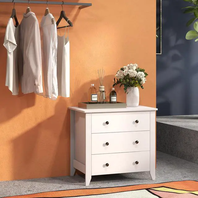 Spacious Storage with 3 Drawers: Featuring three deep drawers (inner size: 21" L x 13" W x 5" D), this dresser chest provides ample storage for clothing, accessories, or essentials. The flat top surface is perfect for displaying décor, holding your night lamp, or keeping daily items like glasses and books within reach.