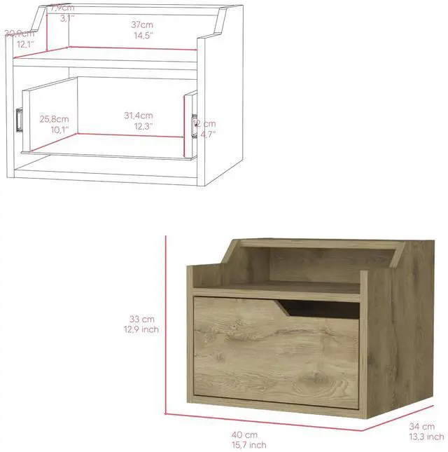 Efficient Storage: Features a spacious drawer (12.3" W x 4.7" H x 10.1" D) for personal items.