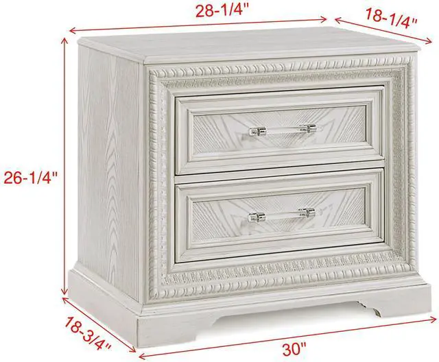 Product Dimensions:- Nightstand : 30" X 18.85" X 26.3"H Listing Includes: - 1pc Nightstand Only. Simple Assembly Require.