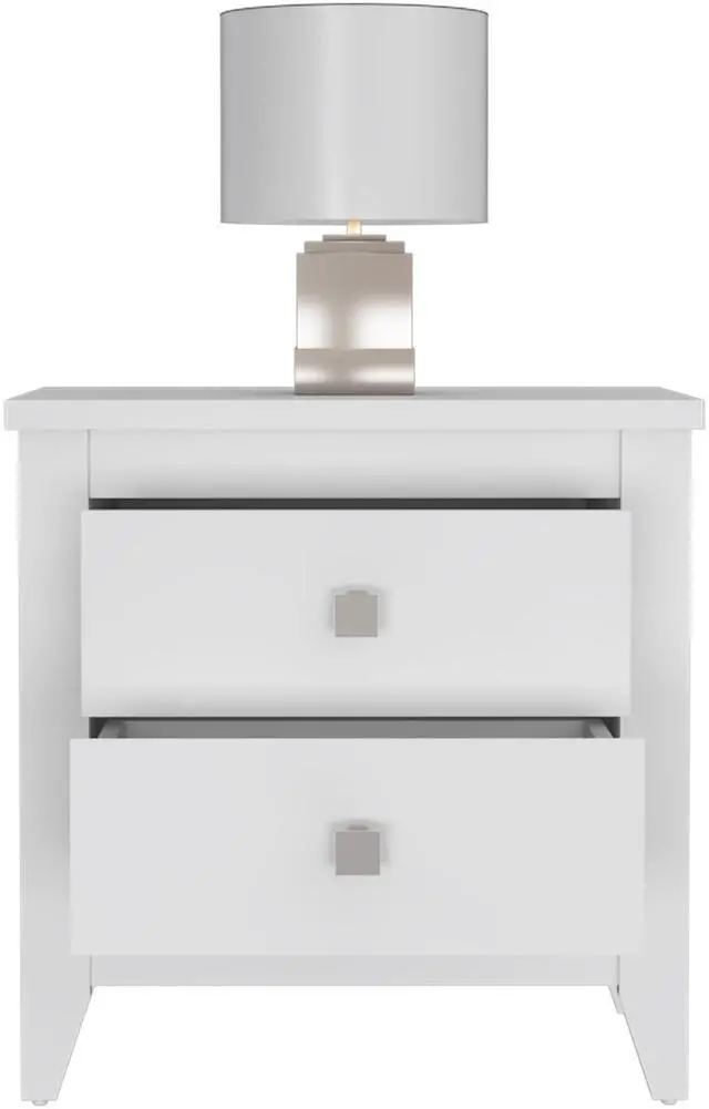 This unit features two drawers for convenient storage of clothing, accessories, or personal items, helping to keep your space organized and clutter-free. The clean, white finish enhances the sense of space and complements various interior designs, while the rectangular shape and modern-style four legs offer a classic, versatile design with a streamlined, minimalist look and reliable stability.