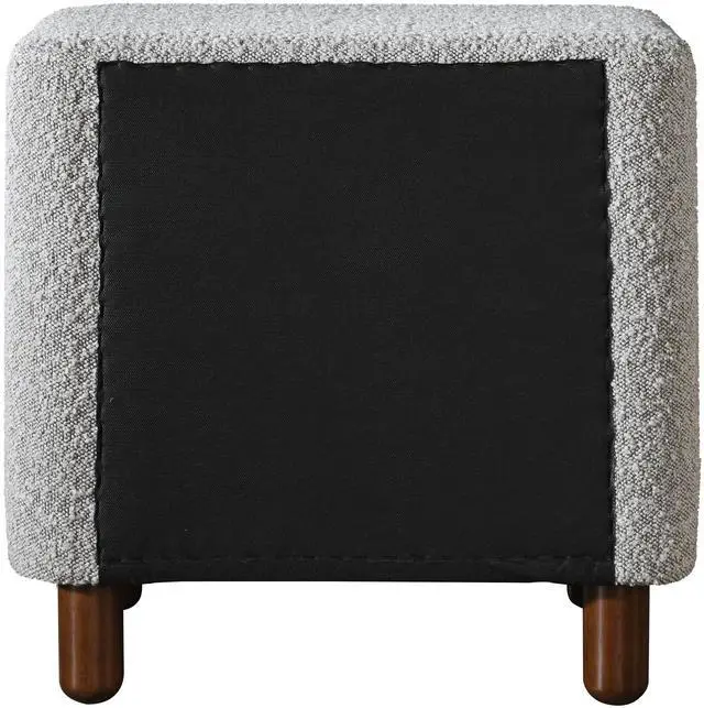 Nightstand gets a chic update in textured boucle fabrication, adding a whimsical touch to any bedroom