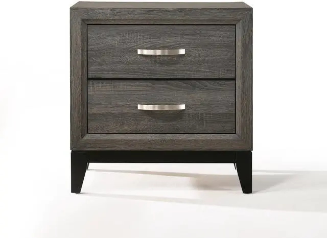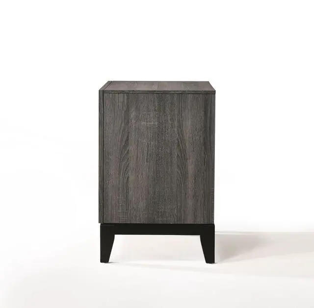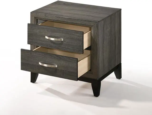 This piece features two spacious drawers, providing ample storage space for various items and helping to keep your space organized and clutter-free. Finished in a weathered gray, it offers a stylish and rustic look that complements a variety of decor styles, making it a versatile addition to any room.