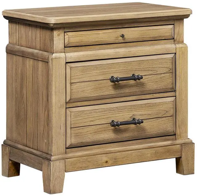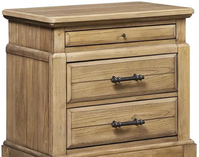 Crafted with elm veneers in a warm caramel finish that highlights the natural wood grain for a rich, rustic appeal