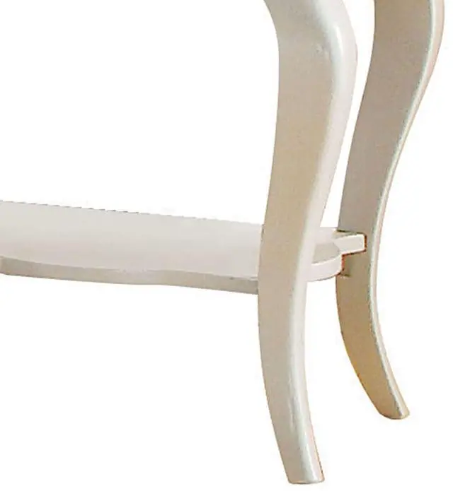The scalloped apron and shelf add a touch of elegance and sophistication to the piece, showcasing intricate craftsmanship that enhances its aesthetic appeal and provides structural integrity