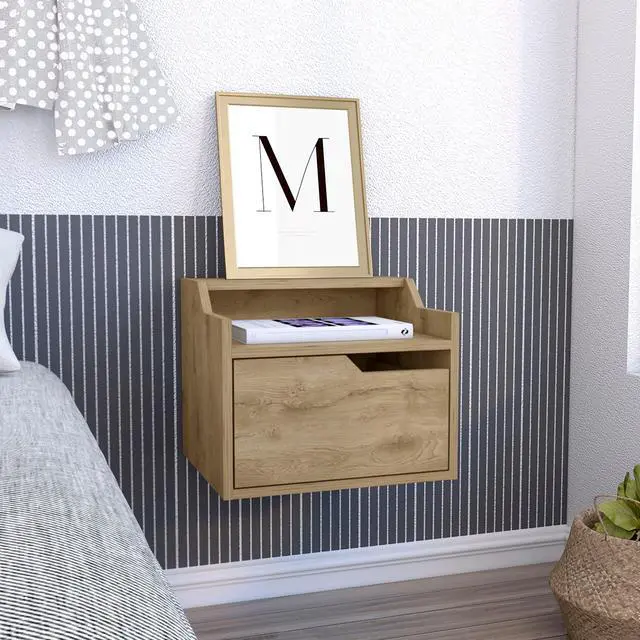 Busan Modern Floating Nightstand , End Table, Side Table Single-Drawer Design with Sleek Two-Tiered Top Shelf Surfaces