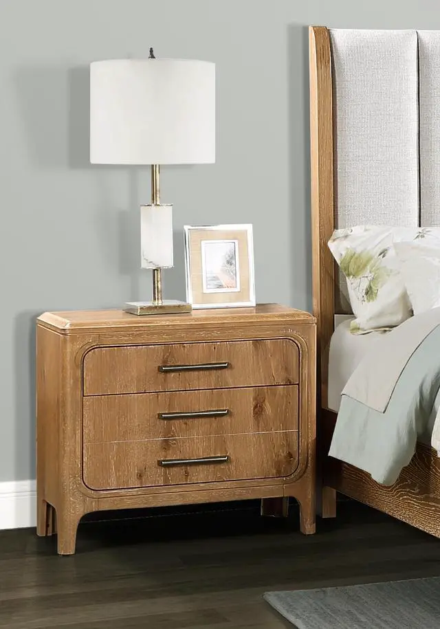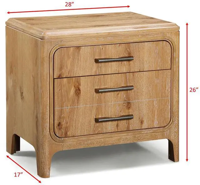 Dimensions:- Nightstand: 28"W X 17"D X 26" HDescription:- This Nightstand will surely make a statement in your bedroom. It features three drawers, with metal hardware for a refined look. Listing Includes: 1pc Nightstand Only. Simple Assembly requires.